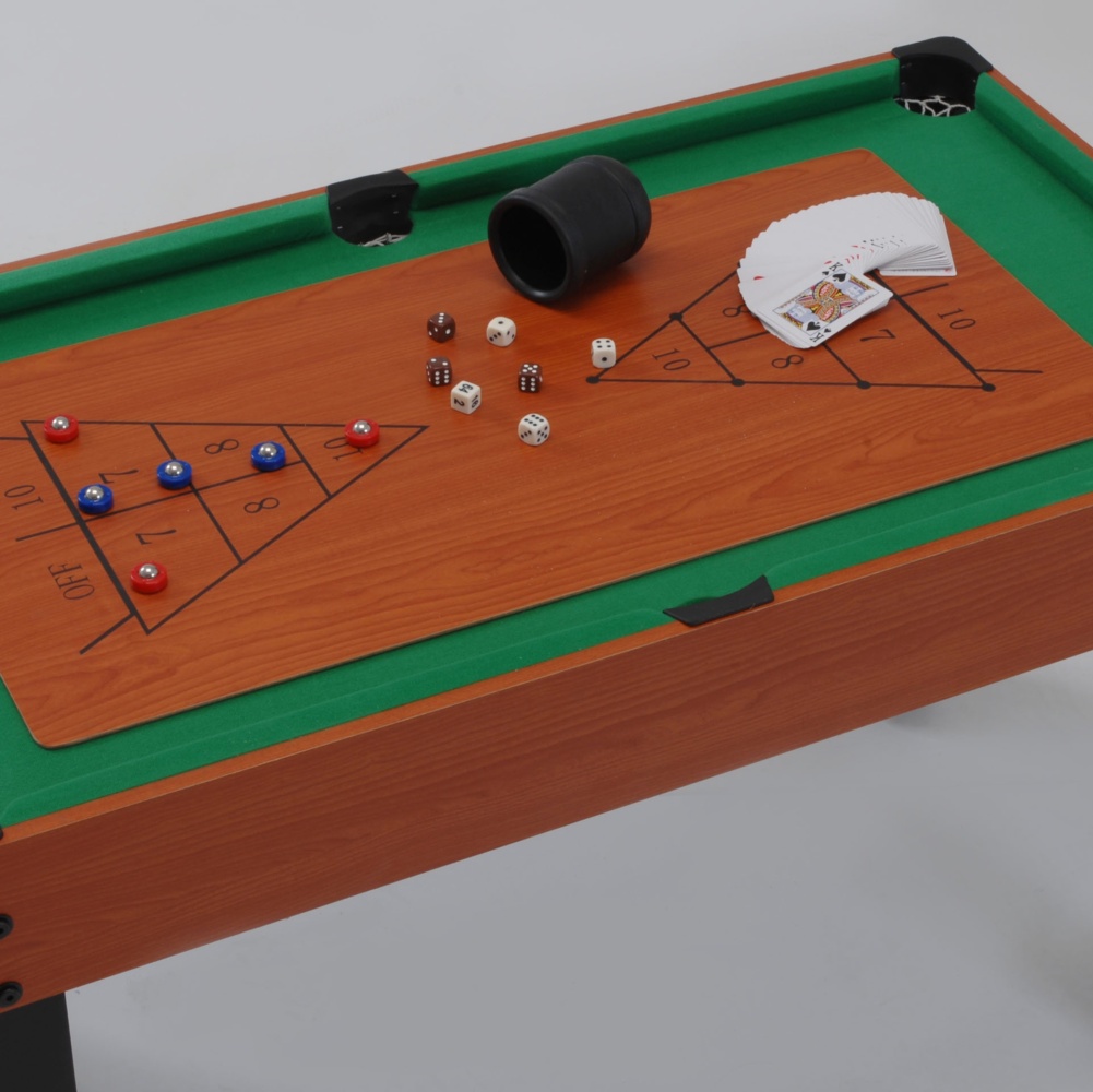 Porta a casa tua il divertimento e la varietà di una intera sala giochi a con Multi 12, versatile tavolo multifunzioni trasformabile in ben 12 giochi diversi, scelti tra i classici più amati: calciobalilla, biliardo, ping pong, speedhockey, bowling, shuffleboard, backgammon, black jack, scacchi, dama, dadi con bussolotto, carte da gioco.