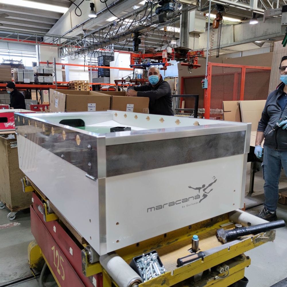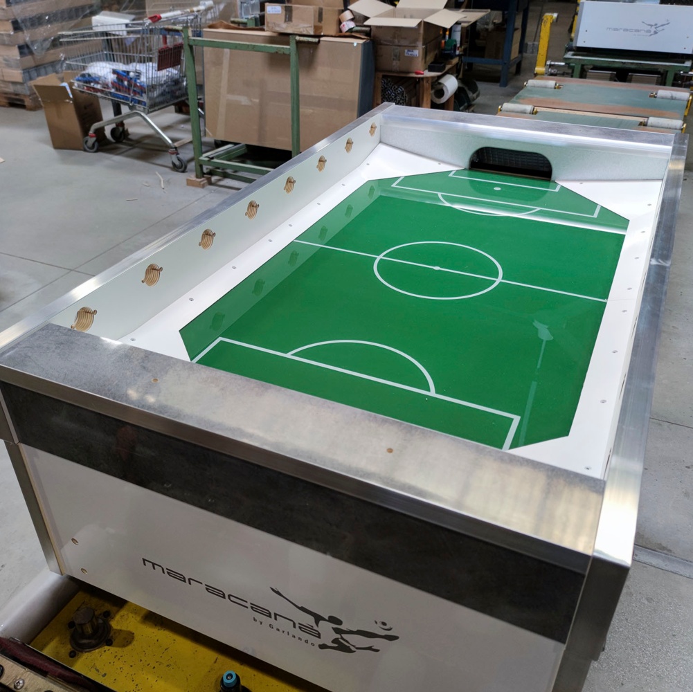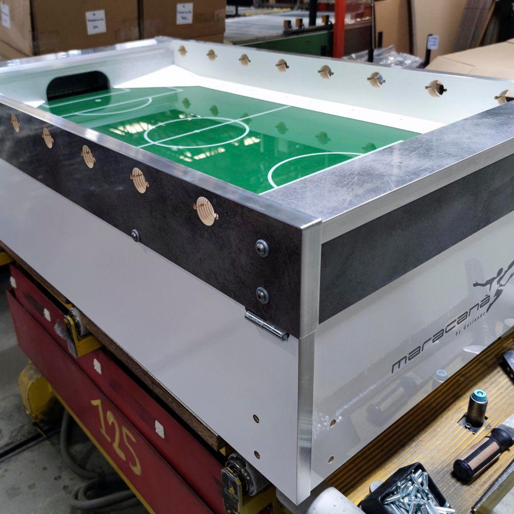 Chi ha detto che l'eleganza è riservata ai modelli da casa e che un calciobalilla da bar deve essere necessariamente spartano? Maracanà White coniuga la raffinatezza del mobile bianco e grigio spazzolato, dai dettagli color silver anziché neri, con tutte le caratteristiche che hanno reso popolare tra gli gli operatori del settore il gemello Maracanà.