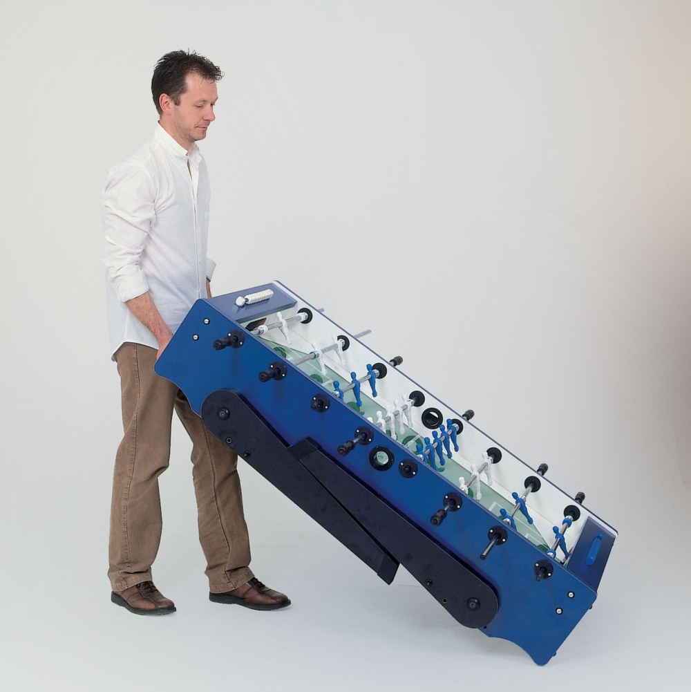 Ideale per tutti gli ambienti in cui non si ha la possibilità di dedicare uno spazio apposito al calciobalilla, può essere riposto comodamente. Il mobile è infatti dotato di due due rotelle che, una volta piegate le gambe, permettono di spostarlo agevolmente.
