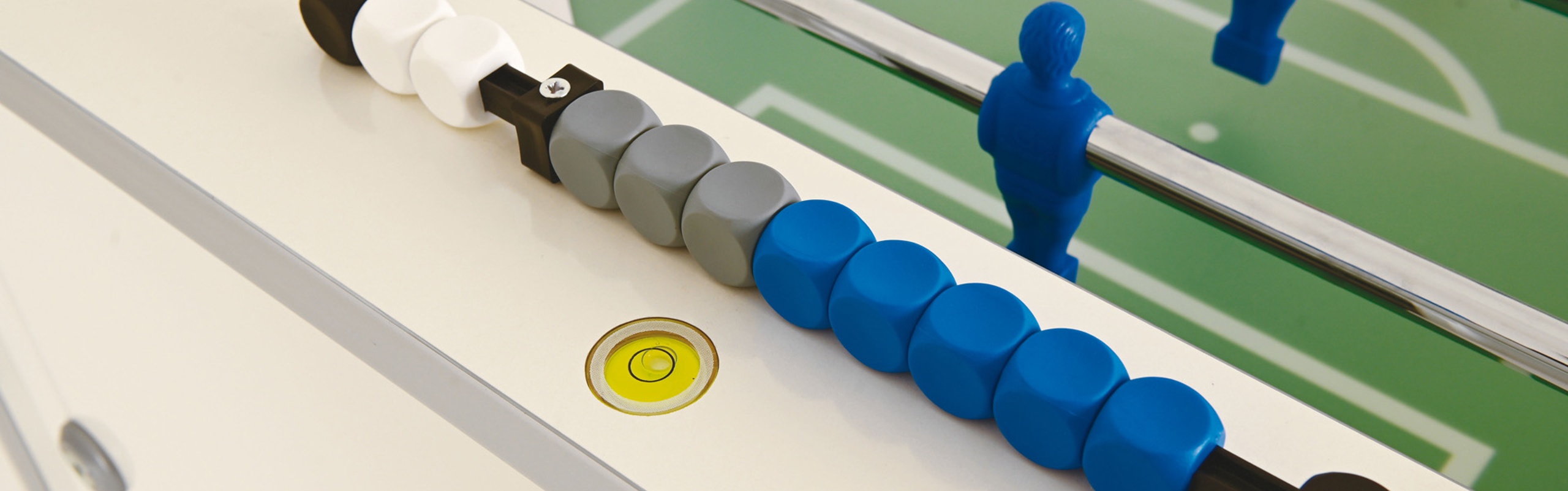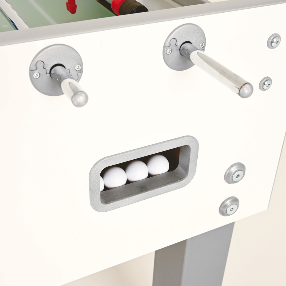 Tra le caratteristiche che lo distinguono da tutti gli altri calciobalilla sono lo stile inconfondibile del mobile bianco con la serigrafia con il nome, le livelle a bolla d'aria sui corrimano segnapunti per controllare che il campo gioco sia perfettamente piano, le gambe quadrate di 10 centimetri per lato.