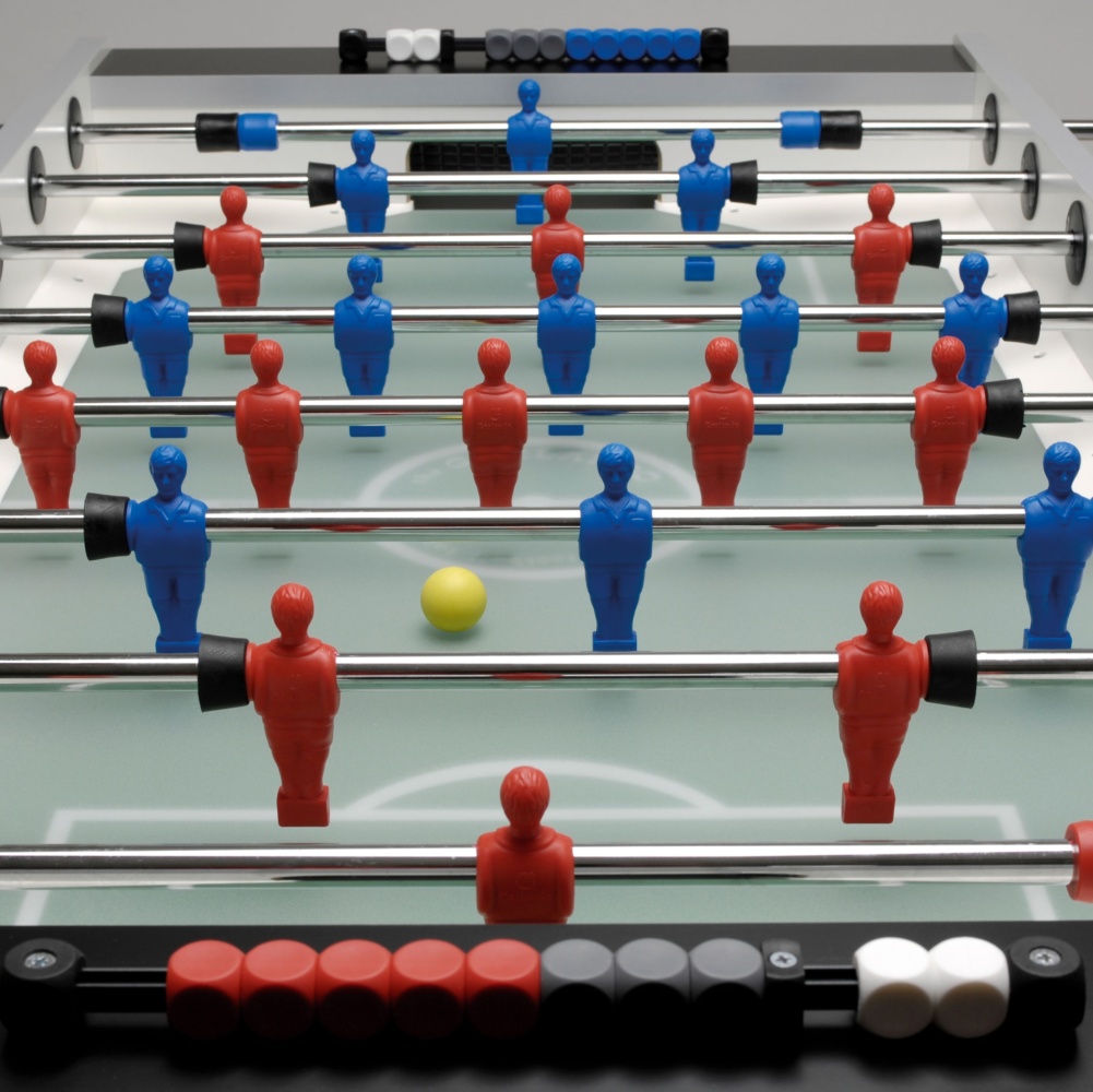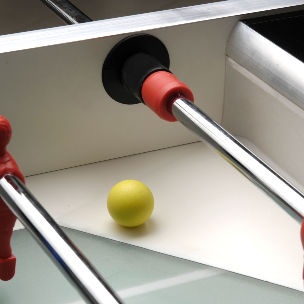 I segnapunti con l’indicazione dei set di gioco oltre che dei goal, i piedini regolabili da competizione, i gommoni al posto delle molle, e i gommoni distanziali distanziali che mantengono il portiere nel raggio di azione della porta completano la dotazione di questo calciobalilla da torneo.