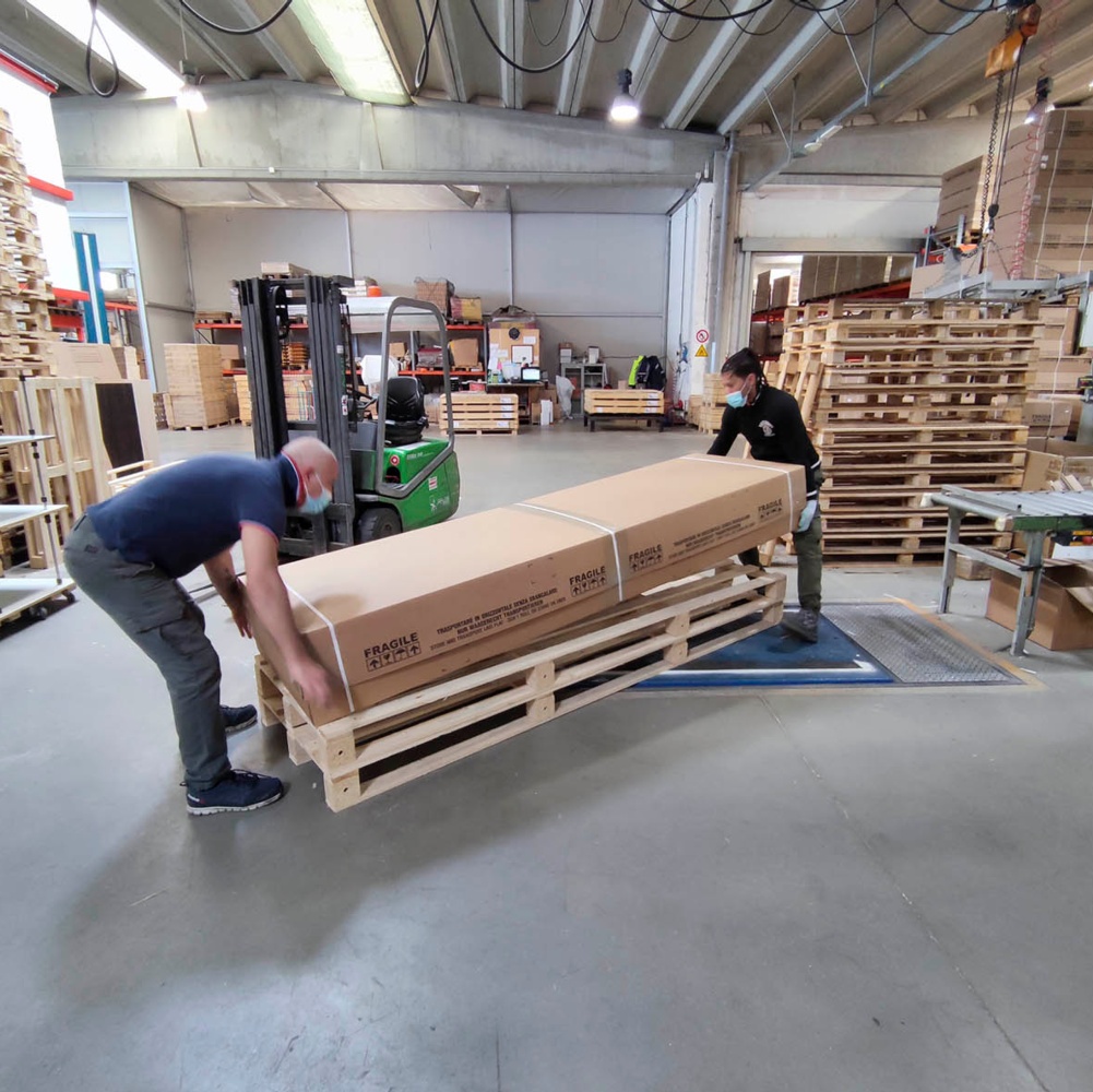 Il mobile riprende l’elegante linea del G-2000, in colore bianco, slanciato dalle gambe inclinate.