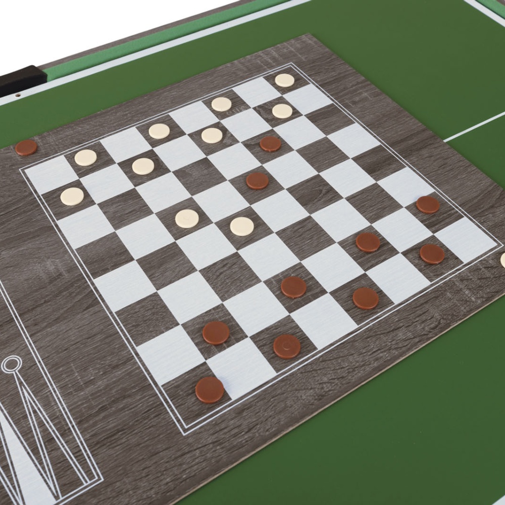 Scegli tra 9 giochi diversi con All in 9, robusto e versatile tavolo multifunzioni trasformabile in ben 9 giochi diversi, scelti tra i classici più amati: calciobalilla, biliardo, ping pong, hockey da tavolo, bowling, shuffleboard, backgammon, scacchi, dama.