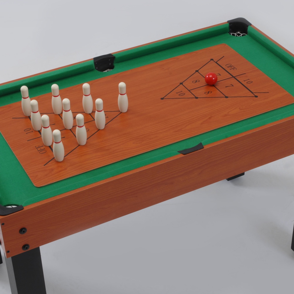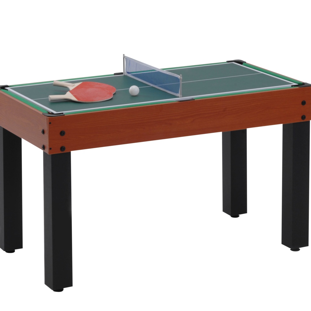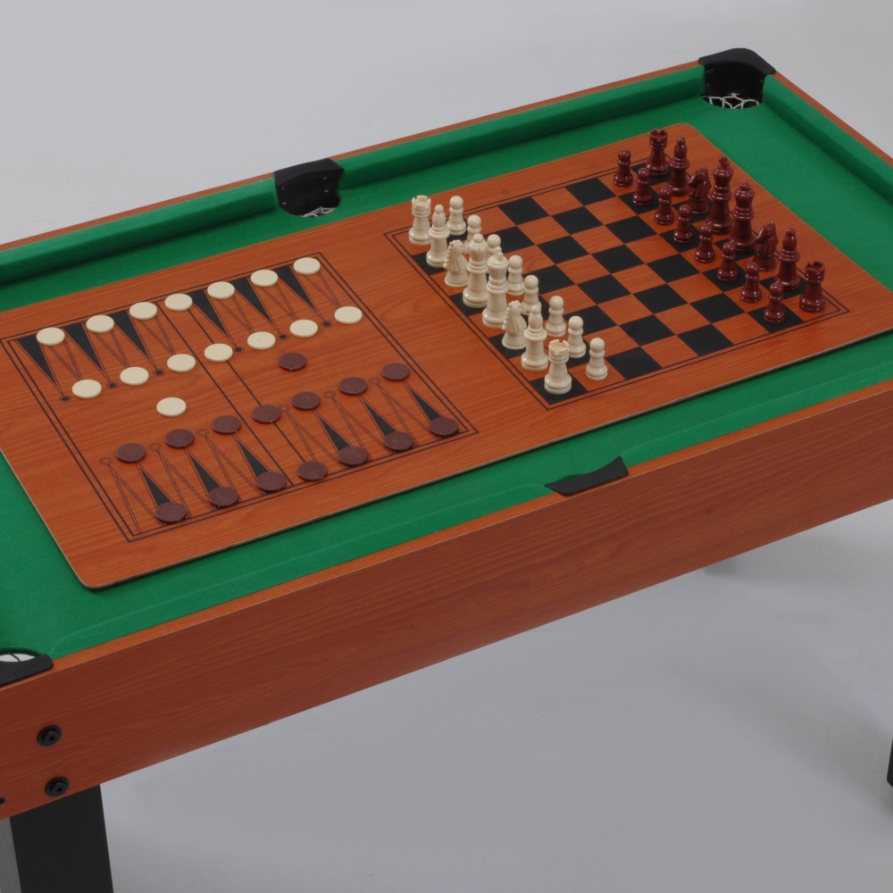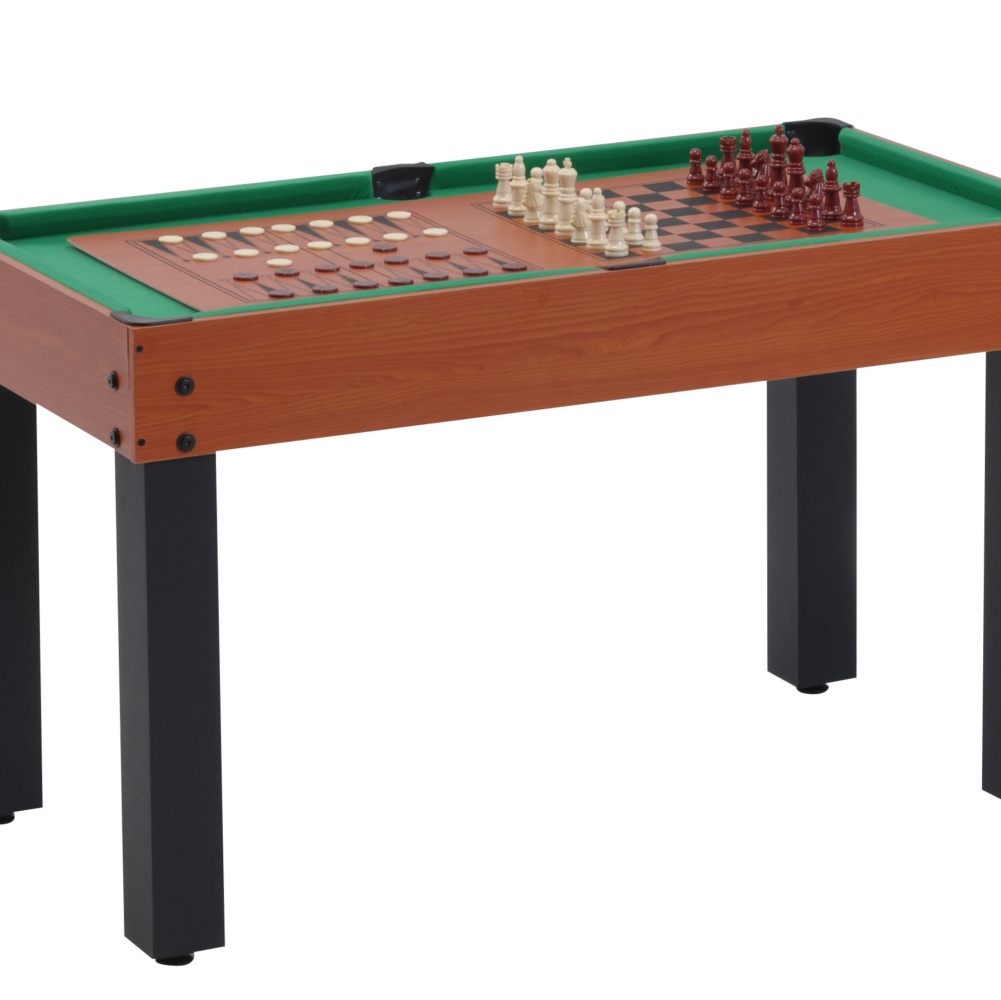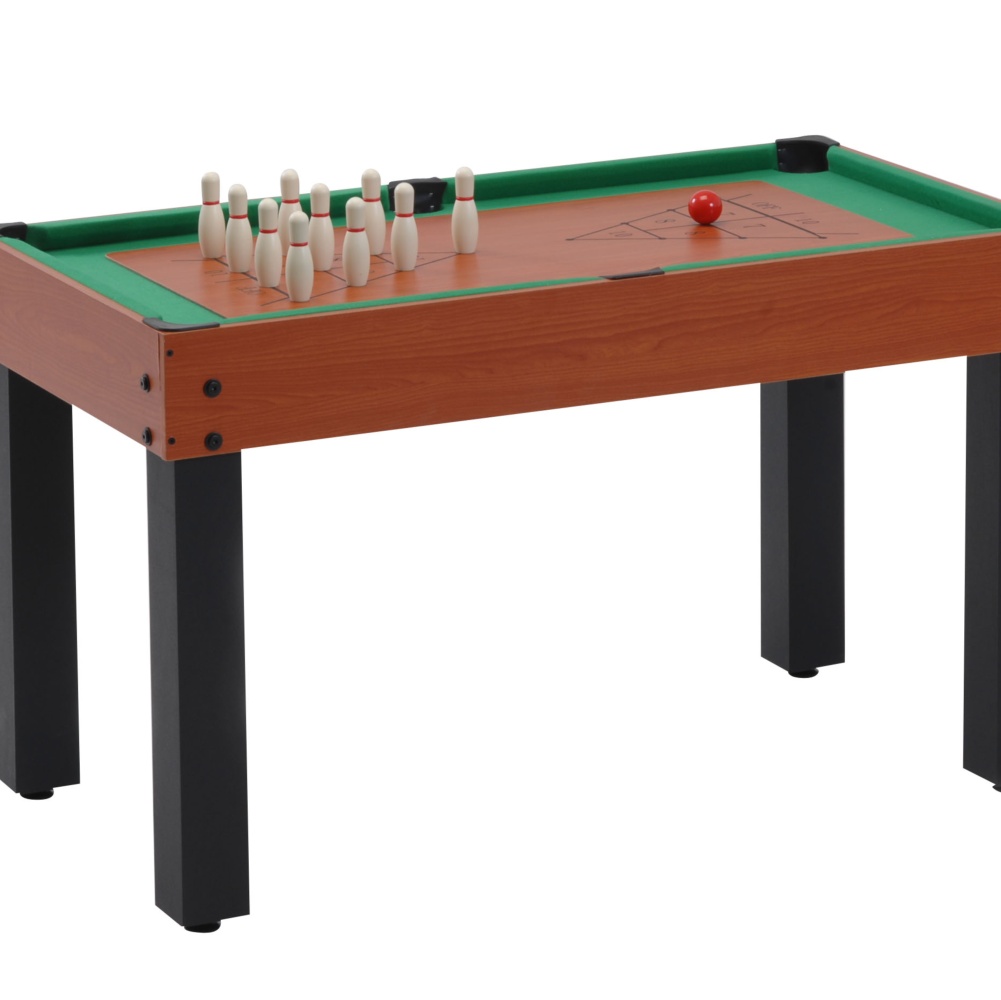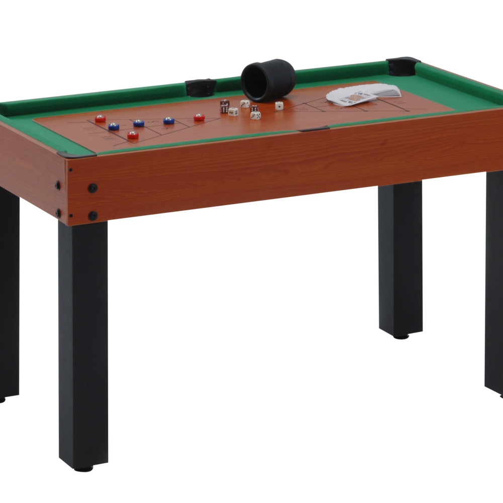 Porta a casa tua il divertimento e la varietà di una intera sala giochi a con Multi 12, versatile tavolo multifunzioni trasformabile in ben 12 giochi diversi, scelti tra i classici più amati: calciobalilla, biliardo, ping pong, speedhockey, bowling, shuffleboard, backgammon, black jack, scacchi, dama, dadi con bussolotto, carte da gioco.