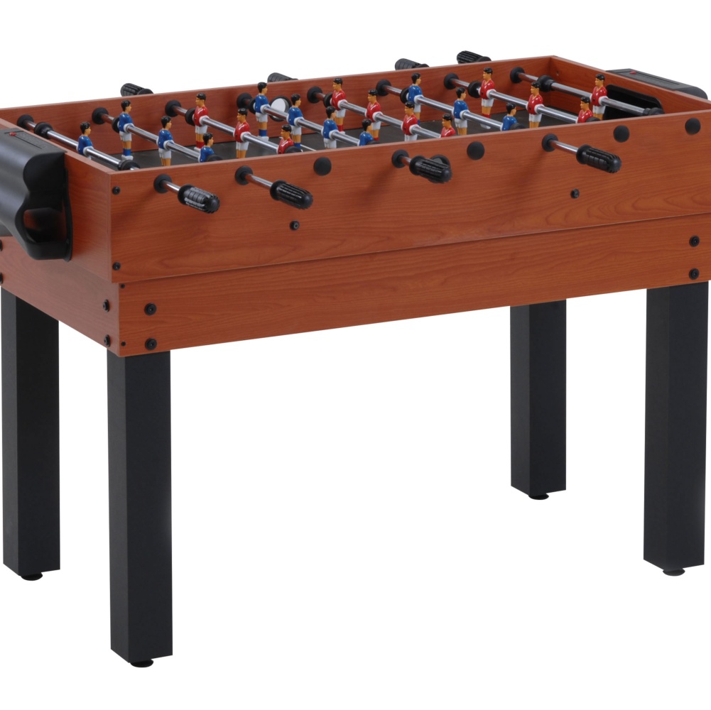 Le robuste gambe quadrate in MDF (cm. 7,5 x 7,5) con rivestimento melaminico color nero rendono il tavolo stabile anche in fase di gioco. Piedini regolabili di serie per un perfetto livellamento del piano di gioco anche su pavimenti irregolari.