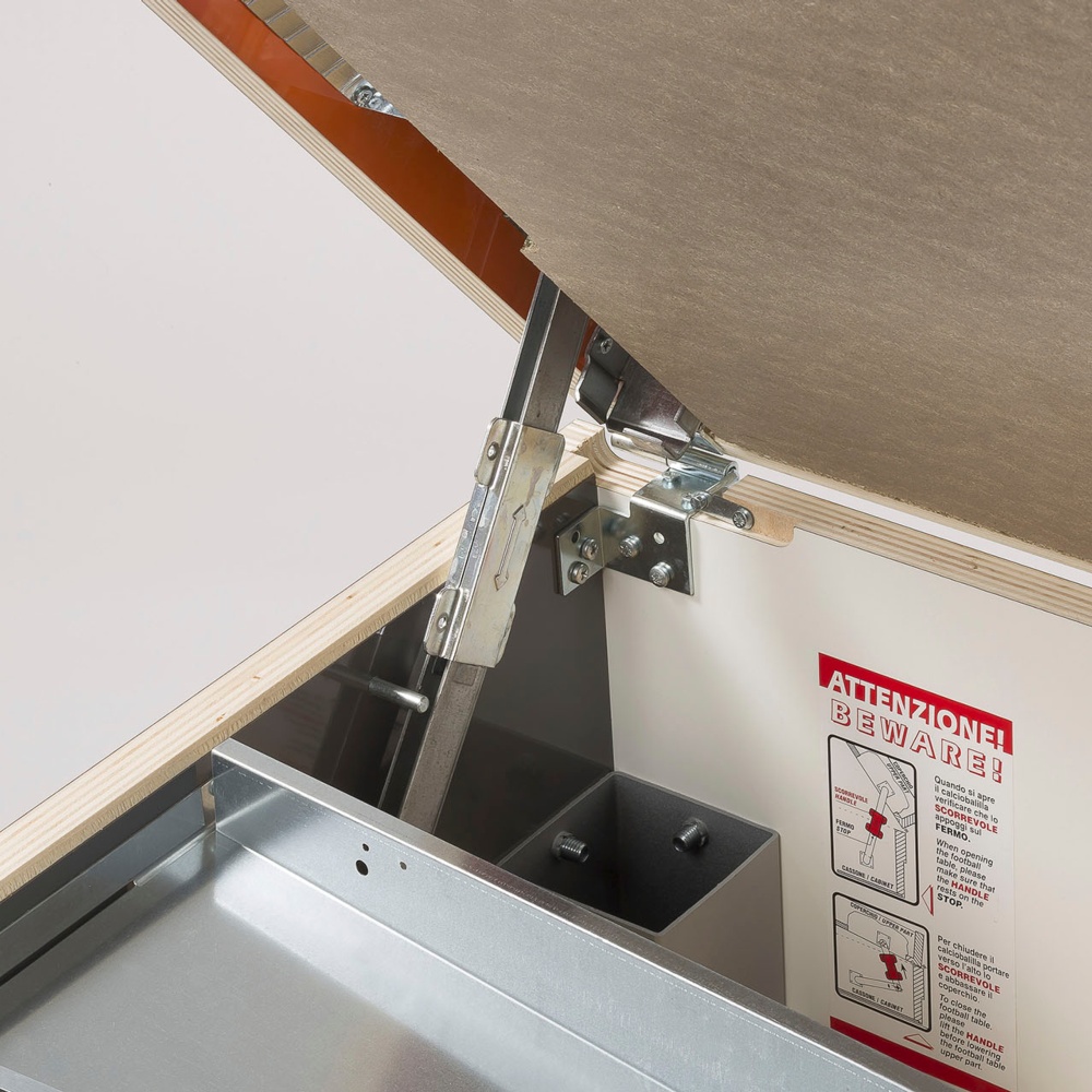 Altamente affidabile e facilissimo da gestire, ha campo di gioco che può essere agevolmente pulito perché separabile dalla parte superiore del mobile, mentre il meccanismo interno di scorrimento delle palline, a cui si accede aprendo comodamente il mobile, è composto di parti sostituibili singolarmente.