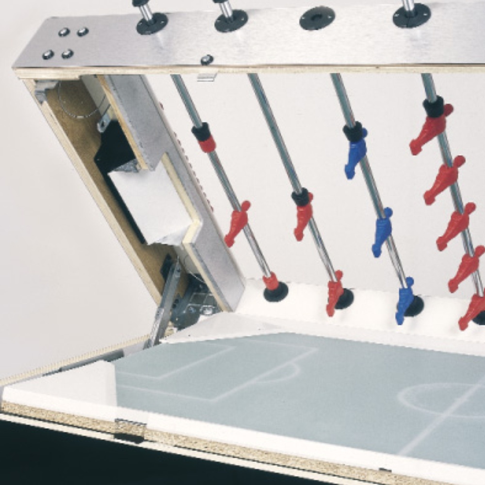 Se il calciobalilla è provvisto di gettoniera funzionante (non disattivata) di tanto in tanto occorrerà aprire il mobile per accedere alla cassa porta monete e svuotarla.
