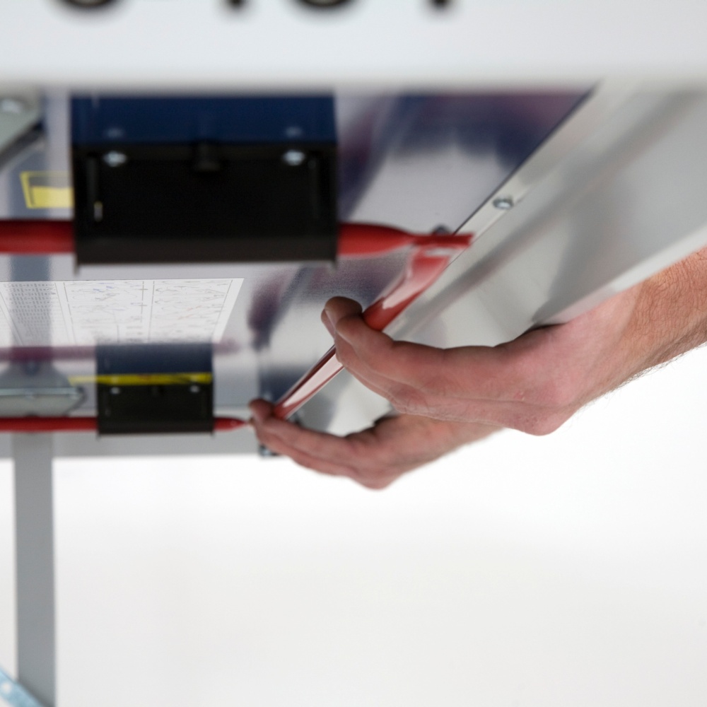 Il sistema ergonomico ECS permette di sbloccare con un solo gesto e nella massima sicurezza i piani del tavolo senza assumere errate posture.