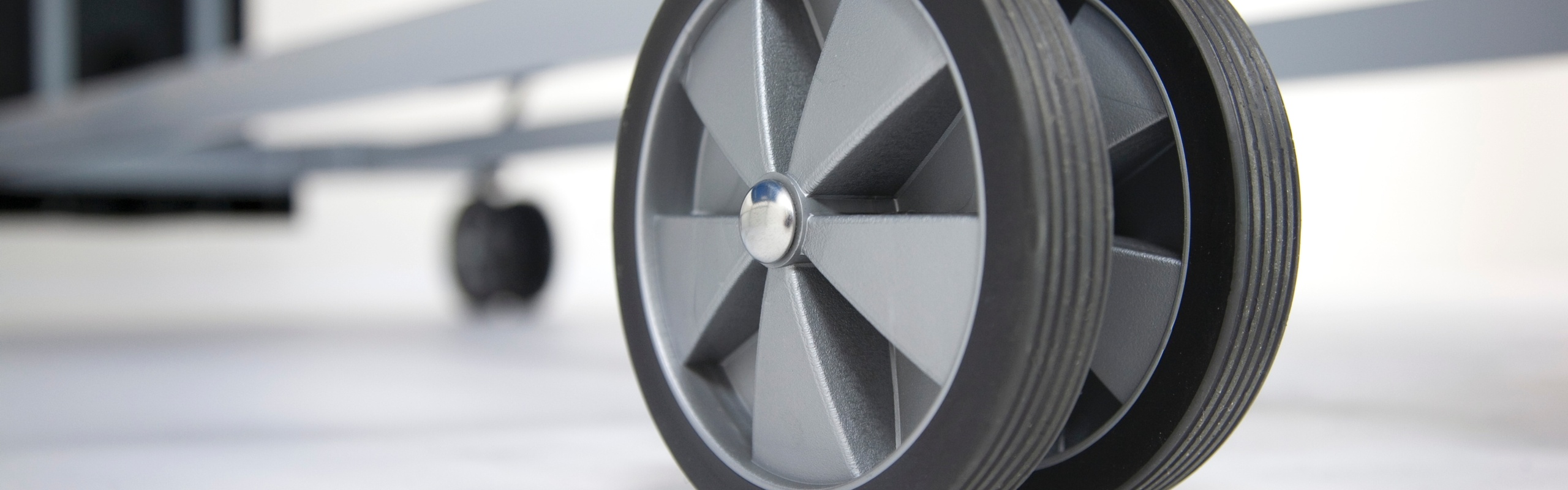 Estremamente stabile, grazie alla struttura con gambe quadrate e doppie barre di collegamento orizzontali, Master Indoor si trasporta facilmente grazie alle ruote doppie, di cui due rotanti a 360°.