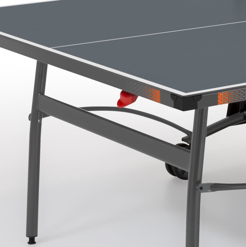 Il piano gioco in un originale color grigio ha  finitura antiriflesso per non affaticare la vista ed è realizzato in materiali che consentono una elevata qualità nel rimbalzo della pallina.