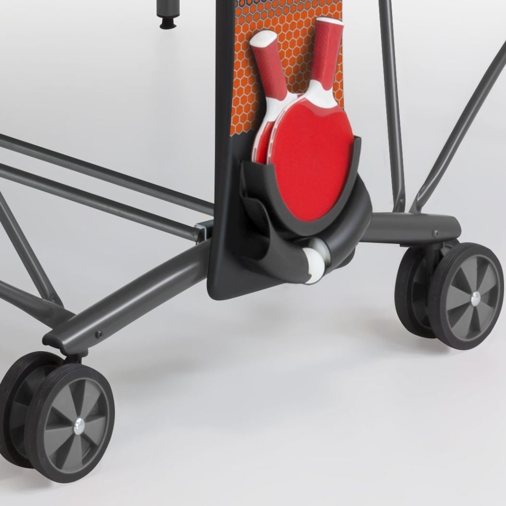 Dotato di chiusura automatica compatta e possibilità di regolare la tensione della rete. I piani di gioco si sbloccano facilmente grazie al sistema ergonomico ECS con manopole sui due lati del piano,