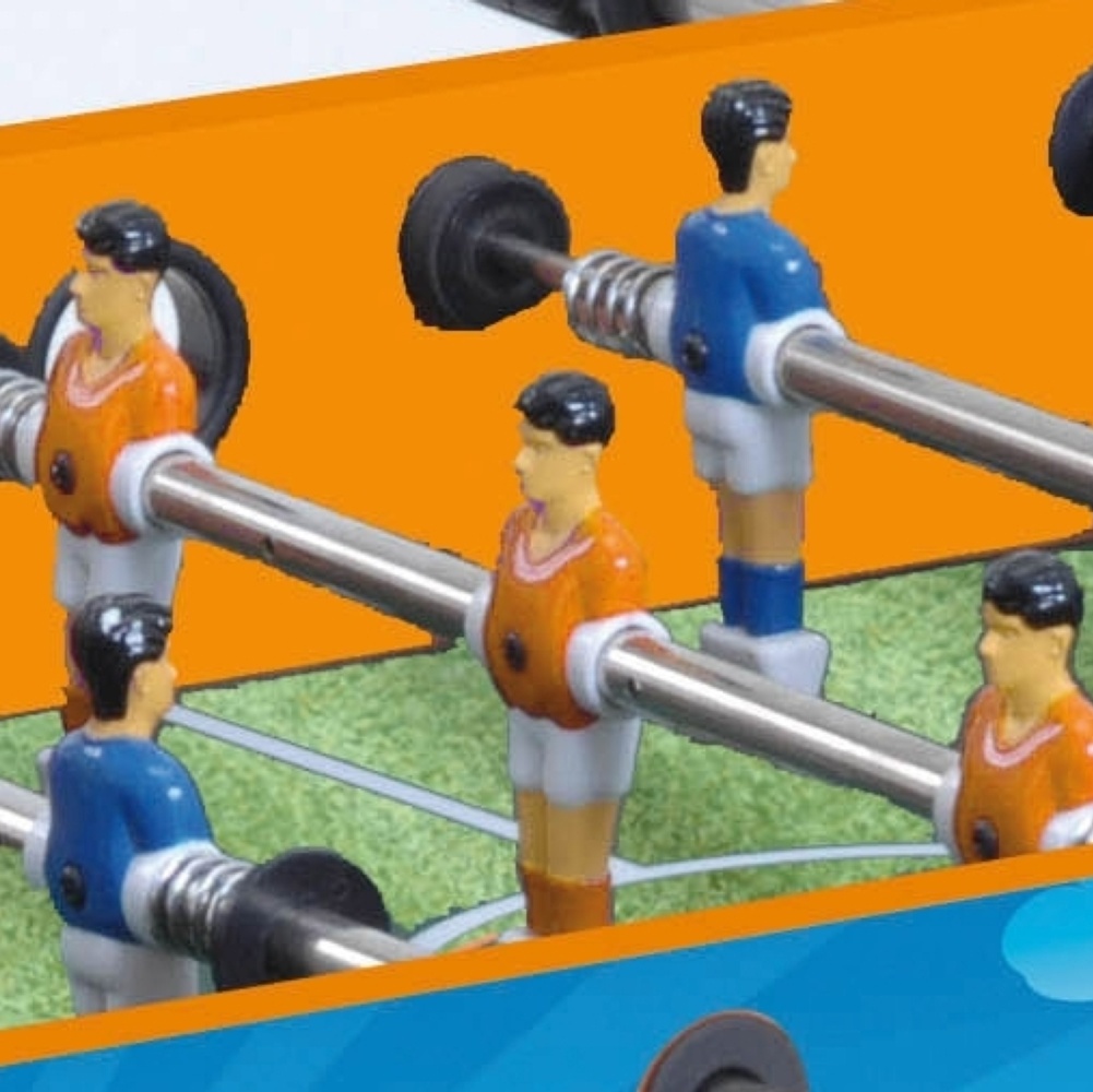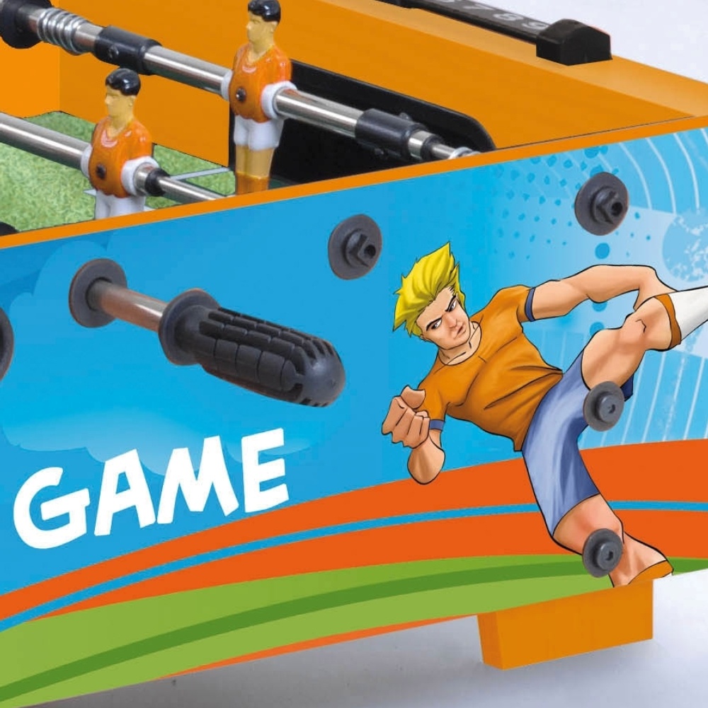 La grafica Soccer Games lo accende di colori vivaci e accattivanti per i più piccoli. Materiali di qualità, grande cura dei dettagli e massima attenzione alla sicurezza (le aste telescopiche sono comprese nella dotazione) caratterizzano questo calciobalilla salvaspazio.
