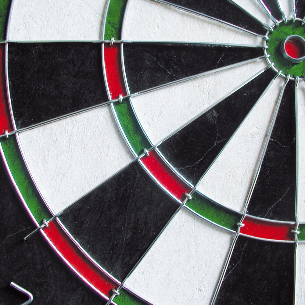 Bersaglio in fibre SISAL di prima qualità per il gioco delle freccette. Suddivisione in 20 spicchi e 2 centri. Colori classici.