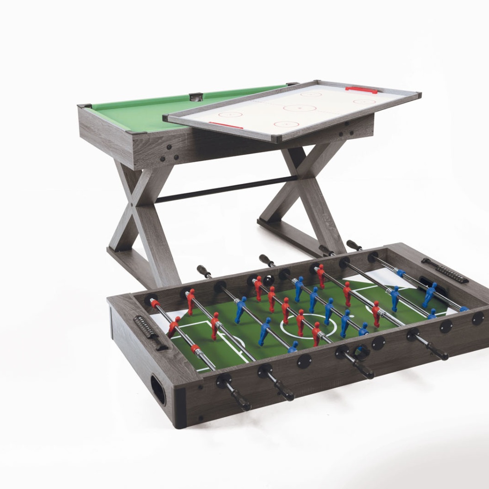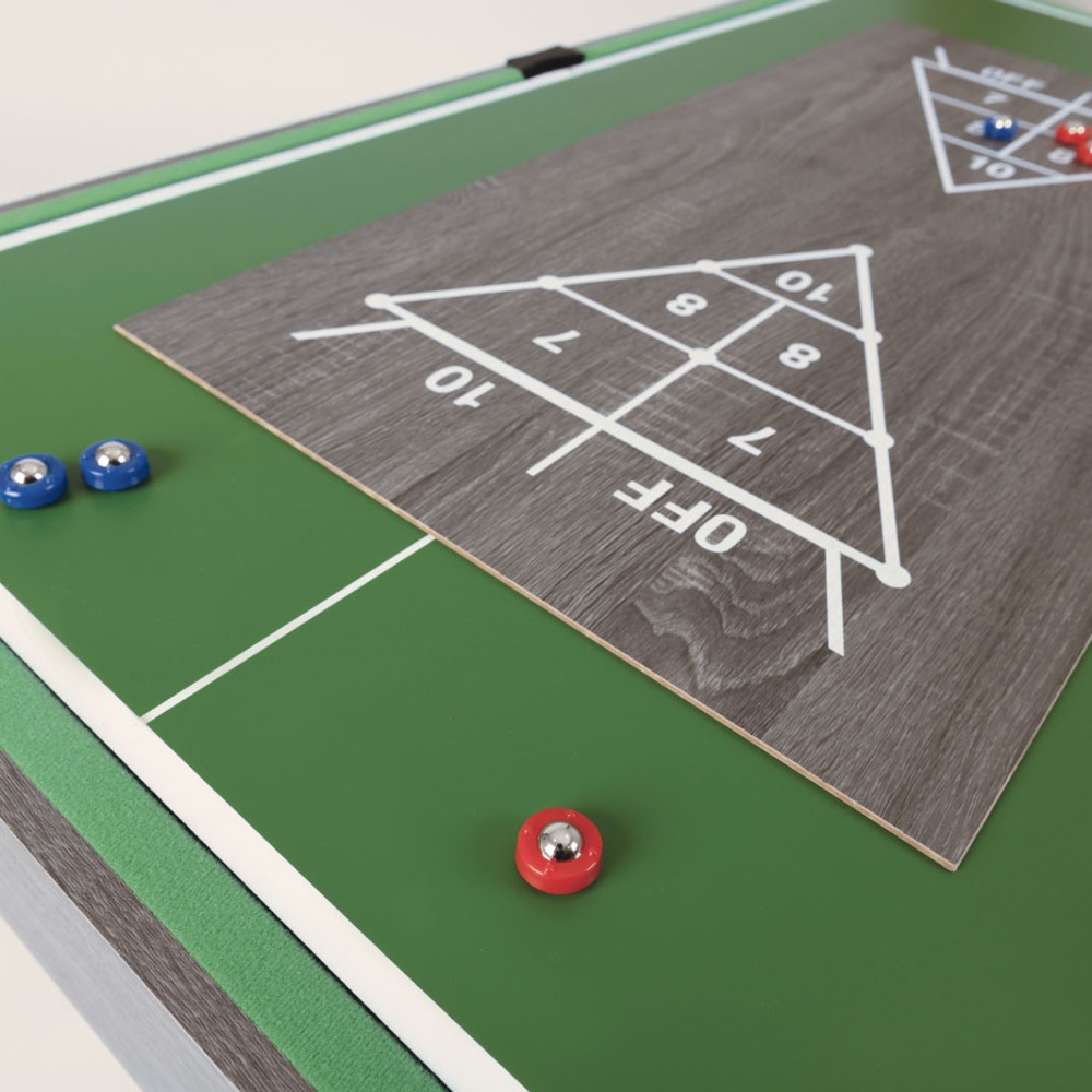 Scegli tra 9 giochi diversi con All in 9, robusto e versatile tavolo multifunzioni trasformabile in ben 9 giochi diversi, scelti tra i classici più amati: calciobalilla, biliardo, ping pong, hockey da tavolo, bowling, shuffleboard, backgammon, scacchi, dama.