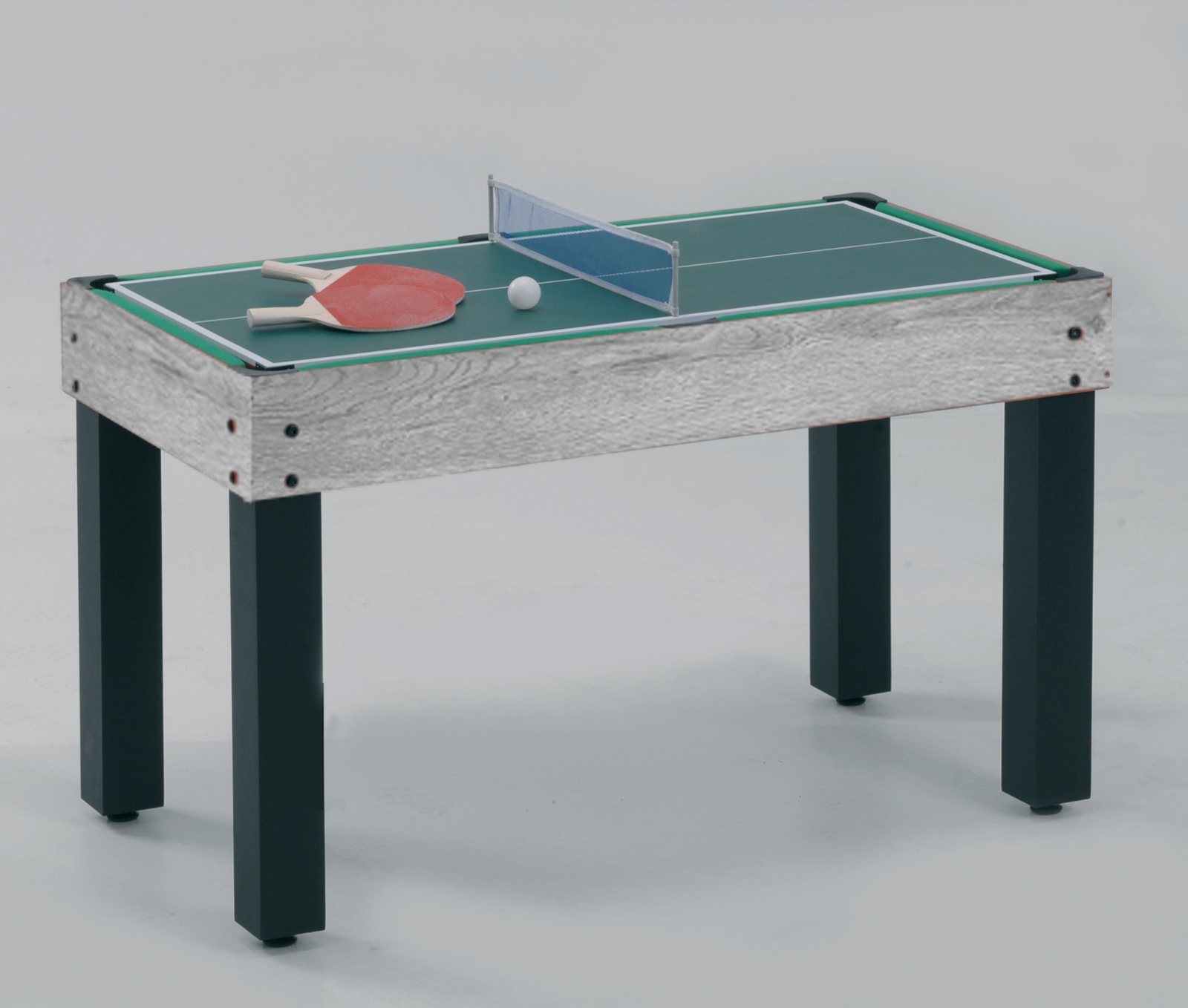 Porta a casa tua il divertimento e la varietà di una intera sala giochi a con Multi 12, versatile tavolo multifunzioni trasformabile in ben 12 giochi diversi, scelti tra i classici più amati: calciobalilla, biliardo, ping pong, speedhockey, bowling, shuffleboard, backgammon, black jack, scacchi, dama, dadi con bussolotto, carte da gioco.