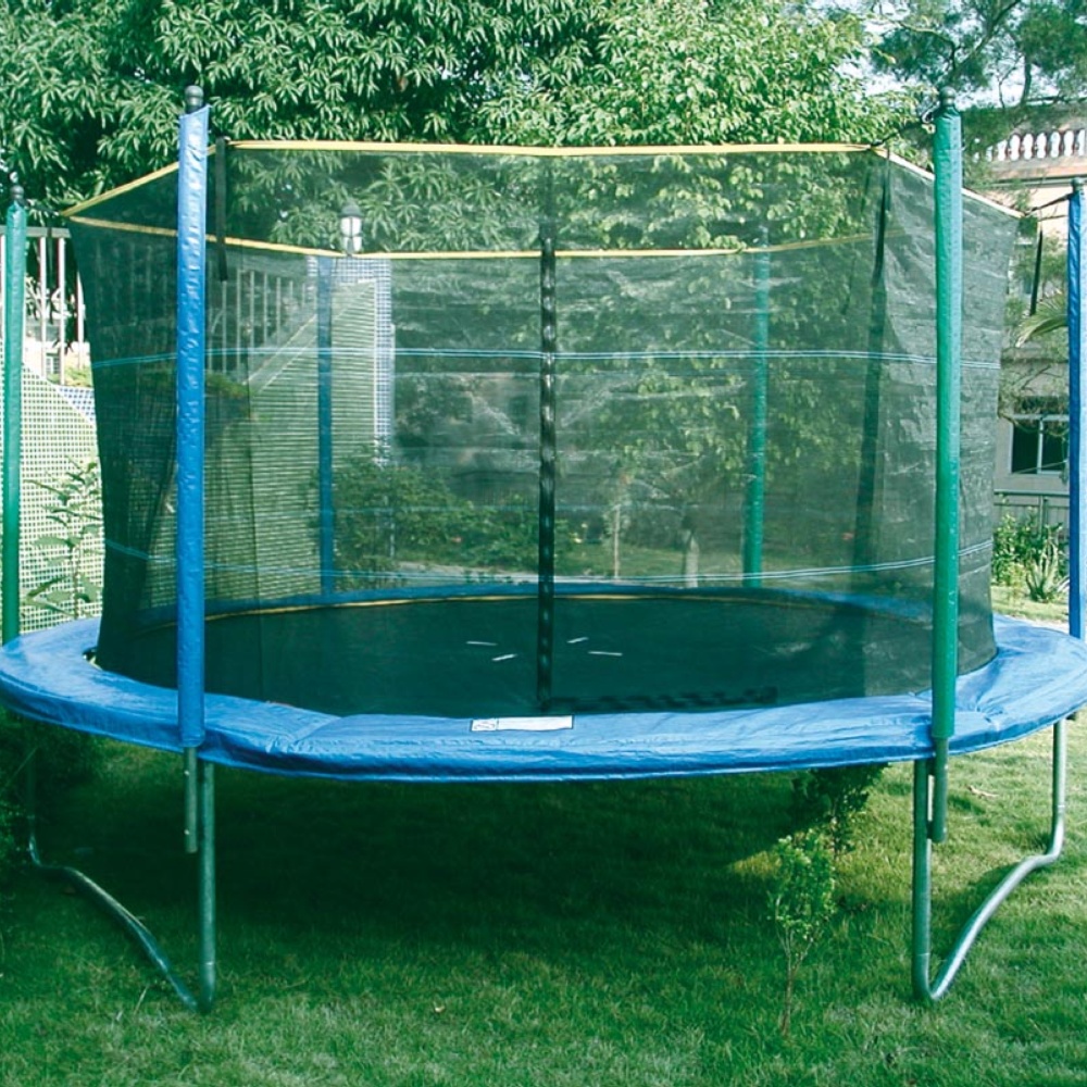 Trampolino di buone dimensioni, adatto agli adulti e ai bambini, grazie alla rete di sicurezza di cui è provvisto di serie, per impedire le cadute a terra.